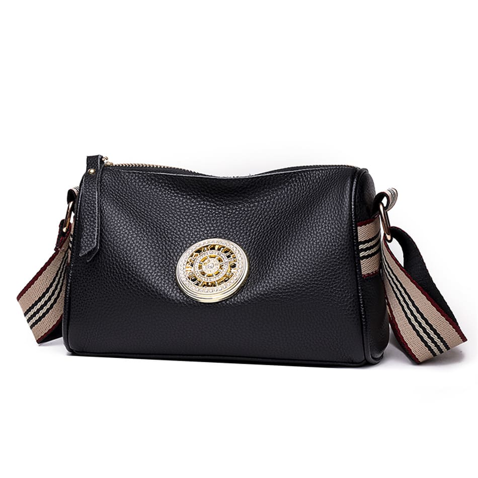 Exiba seu estilo com a Bolsa Feminina Tiracolo Sertoro! Esta peça deslumbrante é trabalhada com um design moderno que apresenta uma placa redonda dourada com pedras cravejadas na região frontal, e uma luxuosa alça com listras contrastantes. É o acessório perfeito para qualquer ocasião e a maneira ideal de mostrar seu gosto sofisticado. A Sertoro é uma das peças mais desejadas por fashionistas!